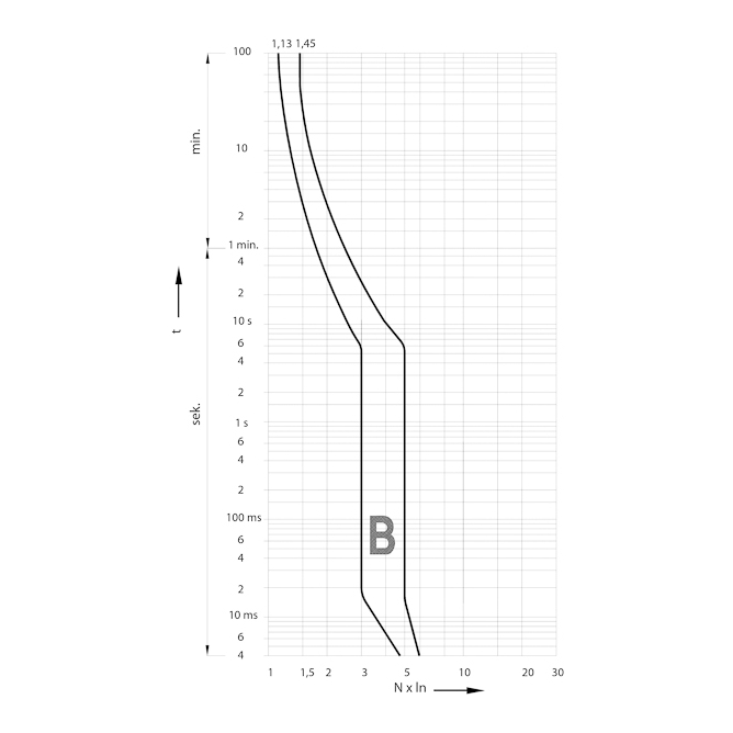 Nazivni napon=230/400V AC | IP zaštita=IP 20 | Način / tip montaže=DIN šina (35mm) | Nazivna struja=6 A | Nazivna struja prekidanja (Icn)=6 kA | Nazivni impulsni napon (Uimp)=6 kV | Model / tip=ETI 6A B | Broj polova=1 P | Karakteristika okidanja=B | Artikal=Automatski osigurač (mini)