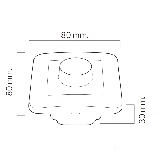 Nazivna snaga=max: 400W (sijalica); 300W (LED) | Nazivni napon=220-240V AC / 50/60Hz | Boja artikla=Bela | Dimenzije=80 x 80 x 30 mm | IP zaštita=IP 20 | Temperatura okruženja (ºC)=-30 °C do +50 °C | Nazivna izlazna struja=1 A | Artikal=Dimer – potenciometar