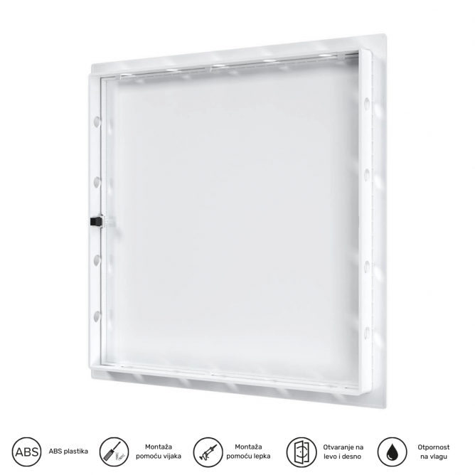 Boja artikla=Bela | Dimenzije=327 x 327 mm | Način / tip montaže=ugradna | Materijal=ABS | Model / tip=L3030N | Artikal=Revizioni otvor (Revizija) | Transportno pakovanje=18 kom