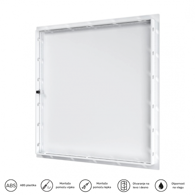 Boja artikla=Bela | Dimenzije=427 x 427 mm | Način / tip montaže=ugradna | Materijal=ABS | Model / tip=L4040N | Artikal=Revizioni otvor (Revizija) | Transportno pakovanje=20 kom