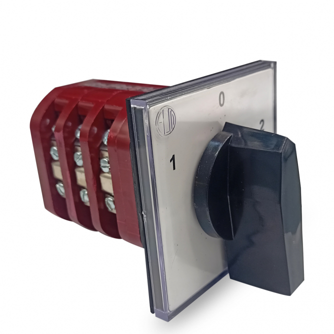 Nazivni napon=220-660 V AC | IP zaštita=IP 20 | Način / tip montaže=Direktno na kontrolni panel ili u plasticno kuciste | Nazivna struja=63 A | Temperatura okruženja (ºC)=-10°C do +60°C | Presek provodnika=16 mm2 | Model / tip=63-53 | Broj polova=3 P | Broj nivoa=3 | Položaj brojeva=1-0-2 | Artikal=Grebenasti prekidac TROFAZNI 1-0-2