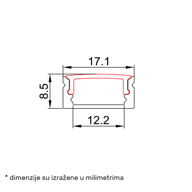 Boja artikla=Crna | Način / tip montaže=nadgradna | Materijal=Anodizovani aluminijum | Dužina=2000 mm