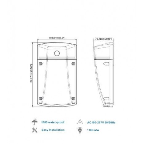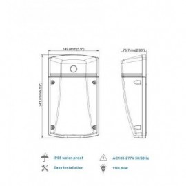 Nazivna snaga=20 W | Nazivni napon=100-277V AC, 50/60Hz | Izvor svetlosti=LUMILEDs 3030 | Svetlosni fluks=2200 lm | Temperatura boje svetlosti=4000 K | Boja artikla=Siva | Prosečan radni vek=35 000 h na 25° C | Dimenzije=242 x 150 x 76 mm | Ugao rasipanja svetlosti=120° | IP zaštita=IP 65 | Način / tip montaže=na zid | Indeks reprodukcije boje (CRI)=≥80(Ra) | Faktor snage (pf)=veće od 0.9 | Materijal=Aluminijum | Energetska efikasnost=A+ | Dimabilnost=Ne | Temperatura okruženja (ºC)=-20 °C do +50 °C | Stepen električne zaštite=Klasa I | Artikal=LED reflektor