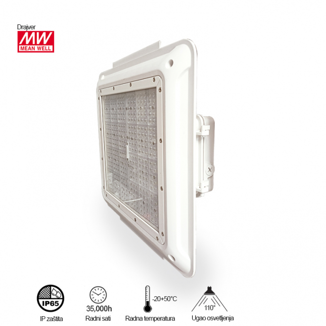 Nazivna snaga=120 W | Nazivni napon=100-265 V AC / 50~60 Hz | Izvor svetlosti=LED SMD Bridgelux | Svetlosni fluks=15330 lm | Temperatura boje svetlosti=5700 K | Boja artikla=Bela | Prosečan radni vek=35 000 h na 25° C | Dimenzije=420 x 420 x 90 mm | Ugao rasipanja svetlosti=110° | IP zaštita=IP 65 | Boja svetla=CW ( hladno bela ) | Indeks reprodukcije boje (CRI)=≥80(Ra) | Faktor snage (pf)=0.95 | Materijal=Aluminijum | Energetska efikasnost=A++ | Dimabilnost=Ne | Temperatura okruženja (ºC)=-20 °C do +60 °C | Stepen električne zaštite=Klasa I | Model / tip=LT-T-115E | Artikal=LED reflektor | Trafo (drajver)=Meanwell