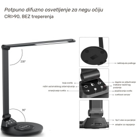 Izvor svetlosti=LED | Svetlosni fluks=650 lm | Boja artikla=Crna | IP zaštita=IP 20 | Način / tip montaže=Na sto | Dimabilnost=Da | Stepen električne zaštite=Klasa II | Model / tip=EW-0CX | Artikal=Stona LED lampa | Transportno pakovanje=14 kom | Linija proizvoda=Home Light – dekorativna rasveta