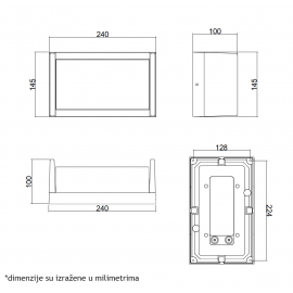 Nazivna snaga=12 W | Nazivni napon=220-240V AC / 50/60Hz | Izvor svetlosti=LED | Temperatura boje svetlosti=4000 K | Boja artikla=Crna | Prosečan radni vek=25 000 h | Dimenzije=240 x 145 x 100 mm | IP zaštita=IP 54 | Način / tip montaže=nadgradna | Indeks reprodukcije boje (CRI)=≥80(Ra) | Materijal=Aluminijum/PC | Energetska efikasnost=A+ | Dimabilnost=Ne | Temperatura okruženja (ºC)=-20 °C do +50 °C | Stepen električne zaštite=Klasa I | Model / tip=W13305 | Artikal=Zidna spoljna lampa | Potrošnja elek. energije:=12 Kwh / 1000h