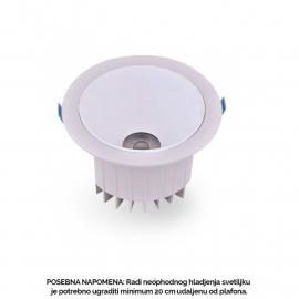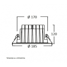Nazivna snaga=30 W | Nazivni napon=220-240 V AC | Izvor svetlosti=Philips COB Certaflux 1205 | Svetlosni fluks=3000 lm | Temperatura boje svetlosti=4000 K | Boja artikla=Bela | Prosečan radni vek=50 000 h na 25° C | Dimenzije=Ø 185 mm, h – 120 mm | Ugao rasipanja svetlosti=45° | IP zaštita=IP 65 | Način / tip montaže=ugradna,u plafon | Indeks reprodukcije boje (CRI)=≥80(Ra) | Faktor snage (pf)=veće od 0.9 | Materijal=Aluminijum | Energetska efikasnost=A++ | Dimabilnost=Ne | Temperatura okruženja (ºC)=- 20°C do + 45°C | Stepen električne zaštite=Klasa II | Model / tip=514001-6 | Dimenzije otvora za ugradnju=Ø 170 mm | Artikal=LED svetiljka | Trafo (drajver)=Philips Certa 30W 0.7A 42V | Transportno pakovanje=20 | UGR=manje od 19 | Potrošnja elek. energije:=30kWh / 1000h