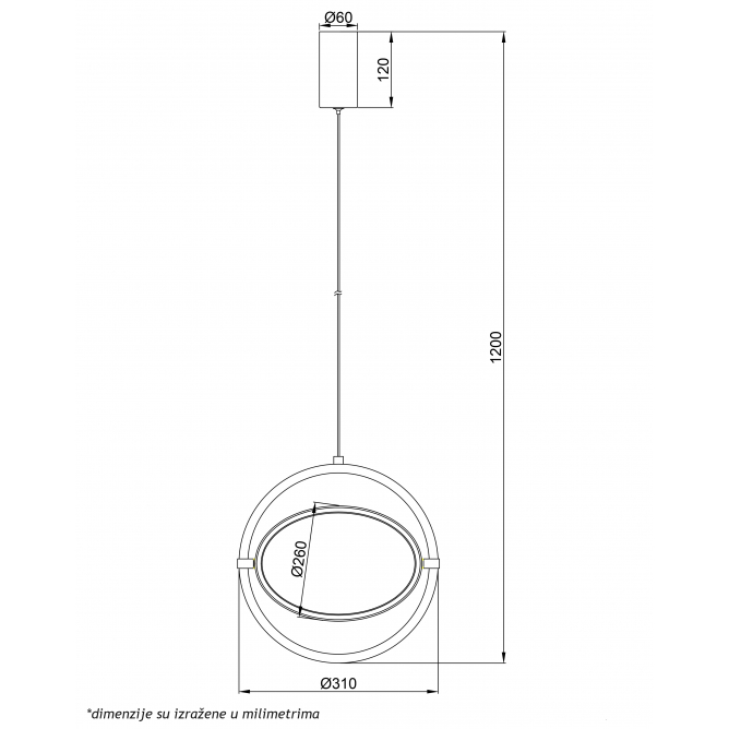 Nazivna snaga=10 W | Nazivni napon=220-240V AC / 50/60Hz | Izvor svetlosti=LED | Svetlosni fluks=600 lm | Temperatura boje svetlosti=3000 K | Boja artikla=Crna | Prosečan radni vek=30 000 h na 25° C | Dimenzije=Ø310 mm; h – 1200 mm | IP zaštita=IP 20 | Način / tip montaže=nadgradna | Indeks reprodukcije boje (CRI)=≥80(Ra) | Materijal=Aluminijum | Energetska efikasnost=A+ | Dimabilnost=Da | Temperatura okruženja (ºC)=-15 °C do +45 °C | Stepen električne zaštite=Klasa I | Vrsta LEDa=LED | Model / tip=LUNA 253 | Artikal=Visilica | Potrošnja elek. energije:=10 kWh / 1000h | Linija proizvoda=Home Light – dekorativna rasveta