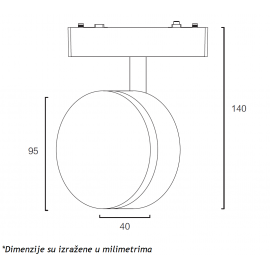 Nazivna snaga=9 W | Nazivni napon=DC48V | Temperatura boje svetlosti=3000 K | Boja artikla=Crna | Dimenzije=95 x 30 mm; h – 140 mm | Ugao rasipanja svetlosti=150° | IP zaštita=IP 20 | Način / tip montaže=na slim magnetic šinu | Indeks reprodukcije boje (CRI)=veći od 90(Ra) | Materijal=Aluminijum | Model / tip=LED26 – B90 | Artikal=Magnetic slim šinska svetiljka | Potrošnja elek. energije:=9 Kwh / 1000h