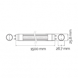 Nazivna snaga=20 W | Nazivni napon=220-240 V AC | Svetlosni fluks=2300 lm | Temperatura boje svetlosti=4000 K | Prosečan radni vek=30 000 h na 25° C | Dimenzije=Ø 27,8 mm, l – 1513 mm | Ugao rasipanja svetlosti=190° | IP zaštita=IP 20 | Indeks reprodukcije boje (CRI)=≥80(Ra) | Energetska efikasnost=A+ | Dimabilnost=Ne | Temperatura okruženja (ºC)=-20 °C do +50 °C | Tip grla=G 13 | Model / tip=T8 jednostrana ( single end ) | Broj uključenja / isključenja=50 000 | Artikal=led cev
