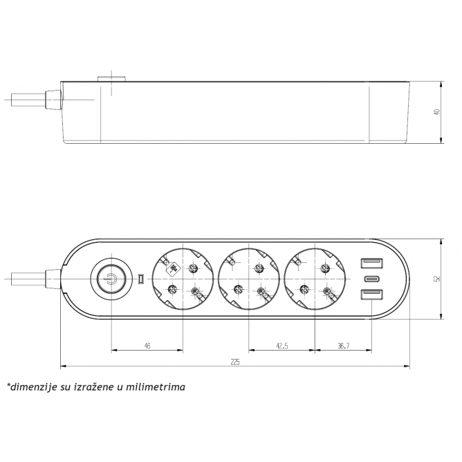 PRENOSNA PRIKLJUCNICA GS03KU 3/3met, 2 USB, TIP C