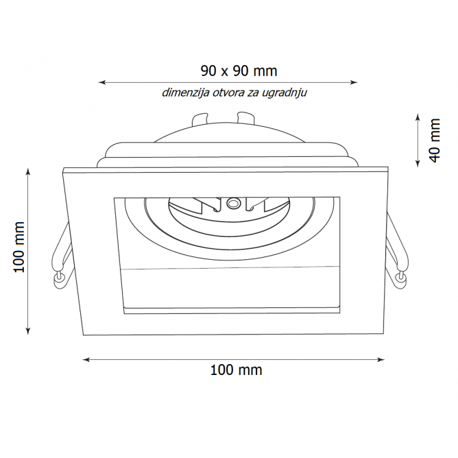 Nazivni napon=220-240V AC / 50/60Hz | Izvor svetlosti=Sijalica (izmenjiva) | Boja artikla=Crna | Dimenzije=100 X 100 X 40 mm | IP zaštita=IP 20 | Način / tip montaže=ugradna | Materijal=Aluminijum | Stepen električne zaštite=Klasa II | Tip grla=GU 10 | Model / tip=četvrtasta – rotirajuća | Dimenzije otvora za ugradnju=90 x 90 mm | Artikal=rozetna