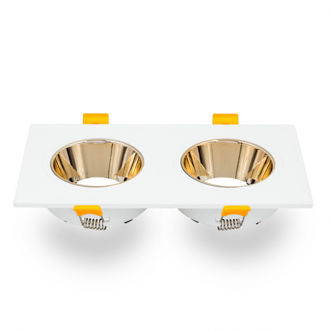 Nazivni napon=220-240V AC / 50/60Hz | Izvor svetlosti=Sijalica (izmenjiva) | Boja artikla=bela/zlato | Dimenzije=D-173mm; Š-88mm; H-30.2mm | IP zaštita=IP 20 | Način / tip montaže=ugradna | Materijal=PC | Stepen električne zaštite=Klasa II | Tip grla=GU 10 | Model / tip=četvrtasta – fiksna | Broj grla=2 | Dimenzije otvora za ugradnju=150mm x 75mm | Artikal=rozetna