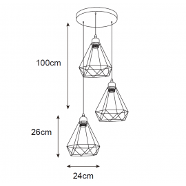 RUSTIK 138 VISILICA 3*E27 CRNA