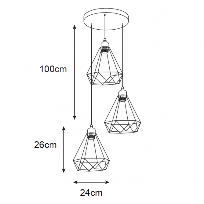 Nazivni napon=220-240V AC / 50/60Hz | Izvor svetlosti=Sijalica (izmenjiva) | Dimenzije=Ø30 cm (baza); h – 100 cm | IP zaštita=IP 20 | Način / tip montaže=nadgradna | Materijal=Aluminijum | Stepen električne zaštite=Klasa I | Tip grla=E 27 | Model / tip=RUSTIK 138 | Broj grla=3 | Artikal=Visilica | Linija proizvoda=Rustik rasveta