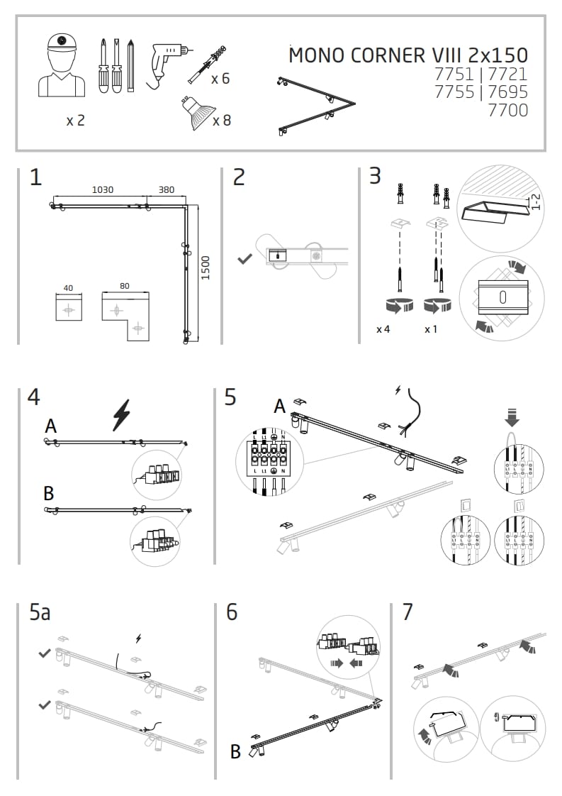 Spot lampe MONO CORNER VIII 2X150 WHITE