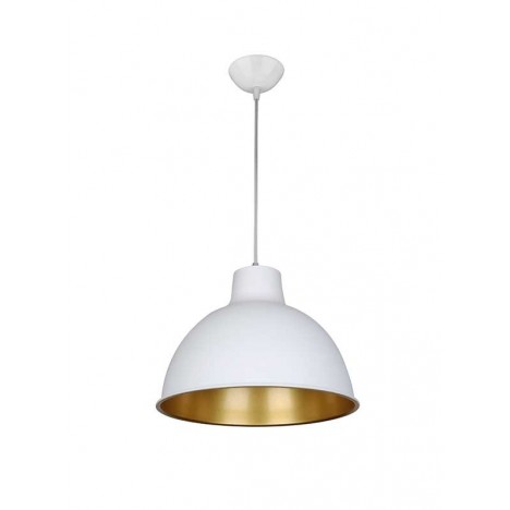 Nazivni napon=220-240 V AC | Izvor svetlosti=1xE27 max. 40W (opciono led) | Boja artikla=Mat bela/zlatna | Dimenzije=Ø 320 mm,h-1000 mm(max.) | IP zaštita=IP 20 | Način / tip montaže=nadgradna, na plafon | Materijal=Aluminijum | Tip grla=E 27 | Broj grla=1