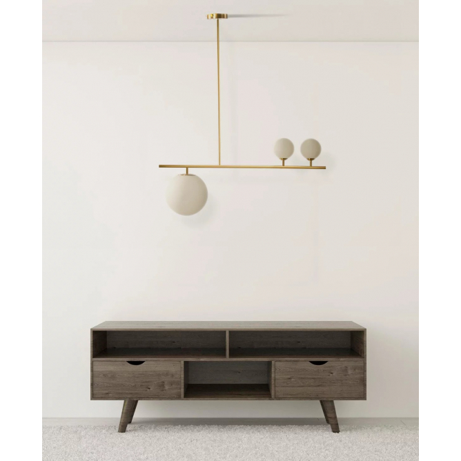 Nazivni napon=220-240V AC / 50/60Hz | Izvor svetlosti=Sijalica (izmenjiva) | Boja artikla=mesing-zlatna | Dimenzije=L-800 mm,H-950 mm, baza ∅100mm,h-25mm) | IP zaštita=IP 20 | Način / tip montaže=nadgradna | Materijal=Metal/staklo | Abažur=kugle: 1x( ∅200mm),2x (∅150mm), mat belo staklo | Stepen električne zaštite=Klasa I | Tip grla=1XE27/2XG9 | Model / tip=VESTA 306 | Broj grla=3 | Artikal=Luster | Linija proizvoda=Home Light – dekorativna rasveta