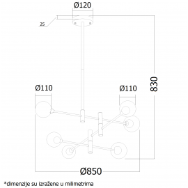 Nazivni napon=220-240V AC / 50/60Hz | Izvor svetlosti=Sijalica (izmenjiva) | Boja artikla=Crna/Zlatna | Dimenzije=L650xH830mm | IP zaštita=IP 20 | Način / tip montaže=nadgradna | Materijal=Metal | Stepen električne zaštite=Klasa I | Tip grla=G 9 | Model / tip=VESTA 321 | Broj grla=6 | Artikal=Luster | Linija proizvoda=Home Light – dekorativna rasveta