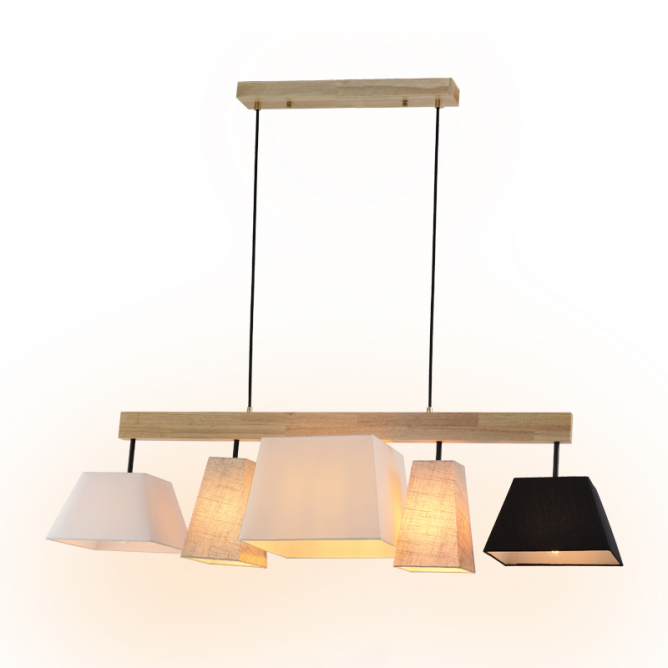 Nazivni napon=220-240V AC / 50/60Hz | Izvor svetlosti=Sijalica (izmenjiva) | Boja artikla=drvo, bela, crna | Dimenzije=1135 x 757 mm | IP zaštita=IP 20 | Način / tip montaže=nadgradna | Materijal=drvo/tekstil | Abažur=tekstil crne i bele boje | Stepen električne zaštite=Klasa II | Tip grla=E 27 | Model / tip=VESTA 434 | Broj grla=5 | Artikal=Luster | Linija proizvoda=Home Light – dekorativna rasveta
