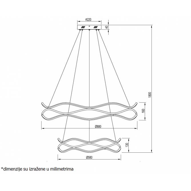 Nazivna snaga=120 W | Nazivni napon=220-240V AC / 50/60Hz | Izvor svetlosti=LED | Svetlosni fluks=6000 lm | Temperatura boje svetlosti=3000 K | Boja artikla=crna / mesing | Prosečan radni vek=30000h | Dimenzije=Ø880/Ø580mm;h-1800mm(Ø220x40mm-na plafonu) | Ugao rasipanja svetlosti=120° | IP zaštita=IP 20 | Način / tip montaže=nadgradna | Indeks reprodukcije boje (CRI)=≥80(Ra) | Faktor snage (pf)=0.9 | Materijal=Aluminijum | Energetska efikasnost=A++ | Dimabilnost=Ne | Temperatura okruženja (ºC)=-20 °C do +40 °C | Stepen električne zaštite=Klasa II | Vrsta LEDa=Epistar SMD 2835 | Model / tip=VESTA 543 | Artikal=Visilica | Potrošnja elek. energije:=120 kWh / 1000h | Linija proizvoda=Home Light – dekorativna rasveta